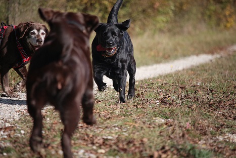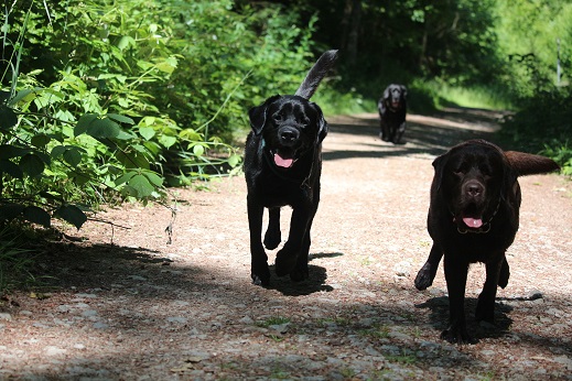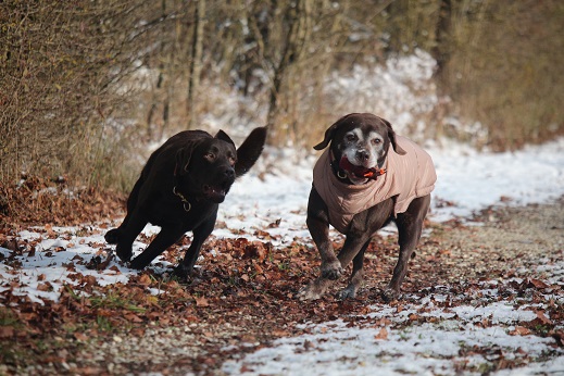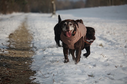gehen ihre üblichen Spaziergänge. Emma merkt man leider ihr Alter an. Manchmal verweigert sie und nimmt sich einen Tag Pause.