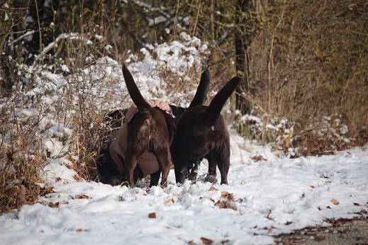 01.03.2018 Emma und Honey kontrollieren sich täglich in puncto Läufigkeit und beide verteilen fleissig "Visitenkarten" beim Gassigehen...