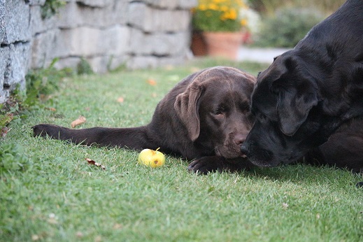 Honey hätte auch gerne den Apfel - Frieda ist da aber recht bestimmt :D  NÖ!