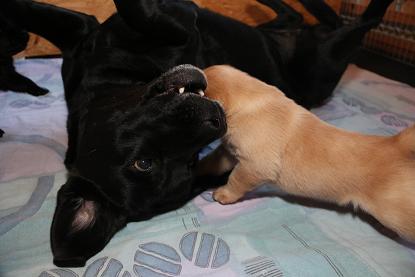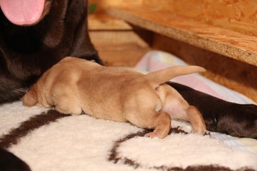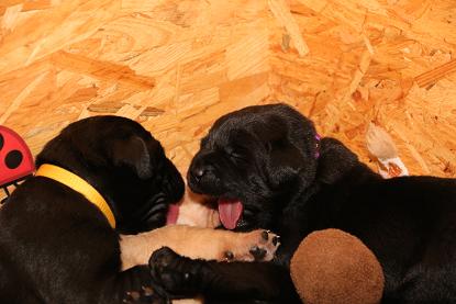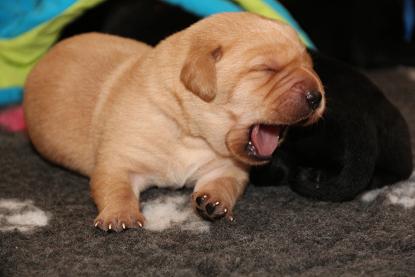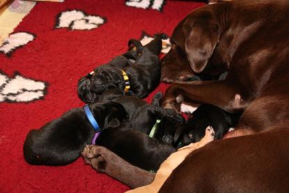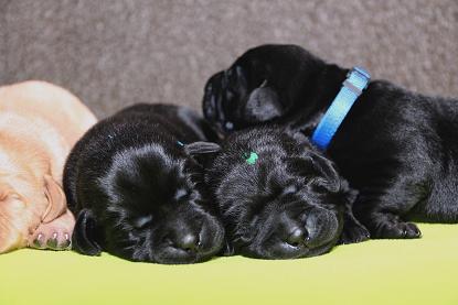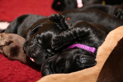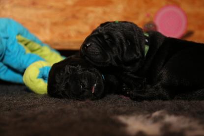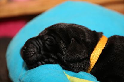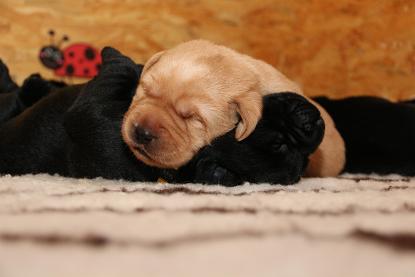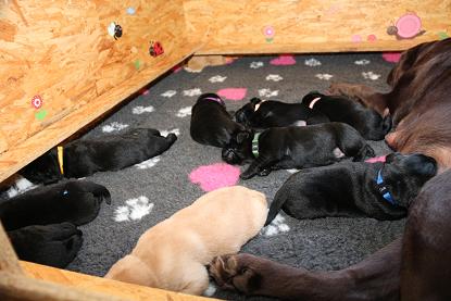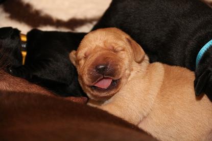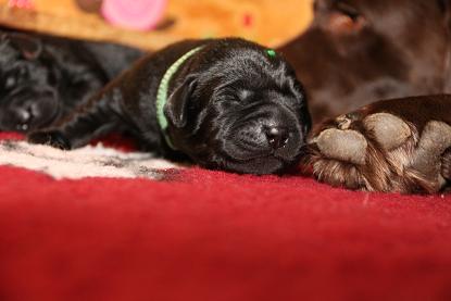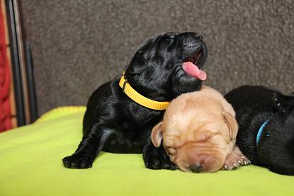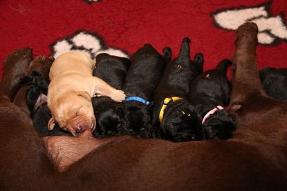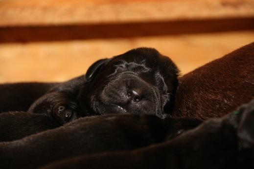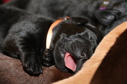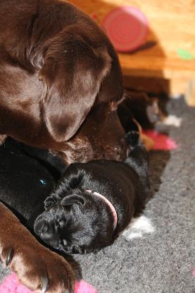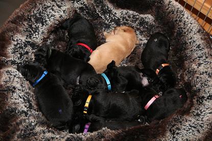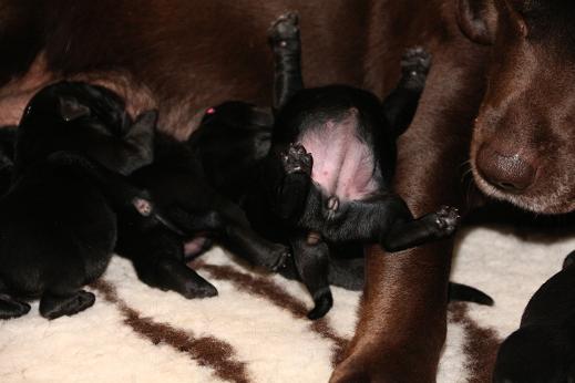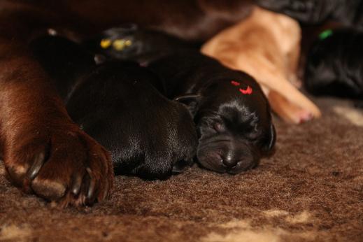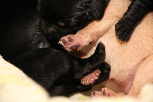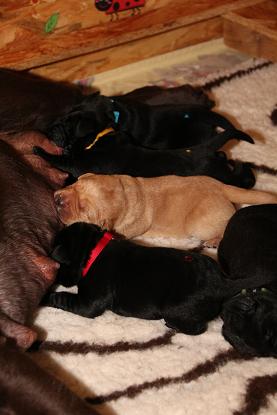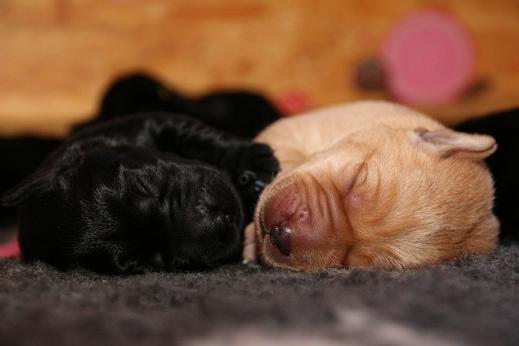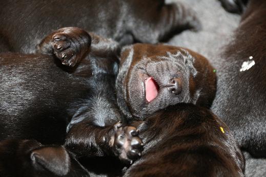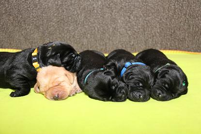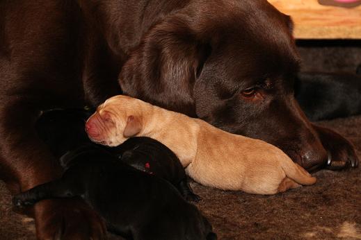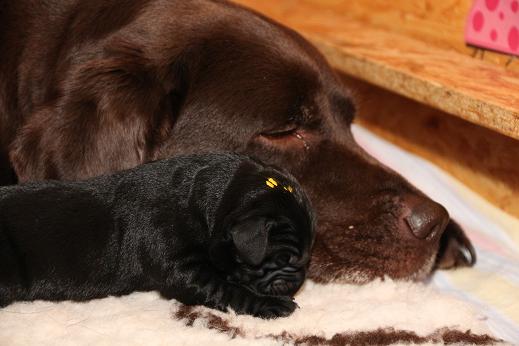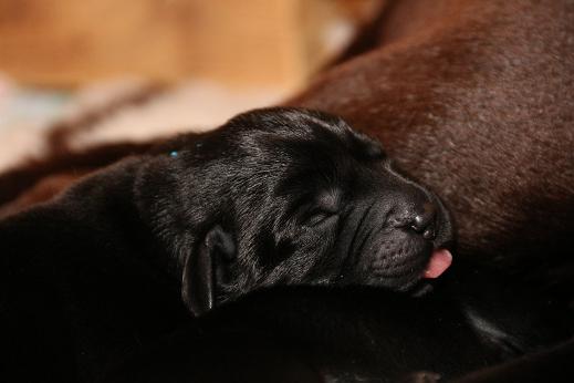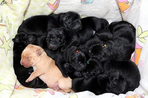 Emma schenkte uns innerhalb von 5 Stunden 1 gelben Rüden, 4 schwarze Rüden und 4 schwarze Hündinnen mit “Kampfgewichten” von 400 - 470 Gramm <3