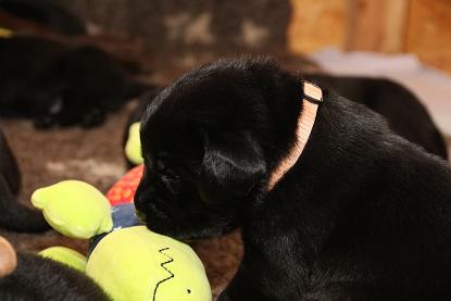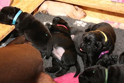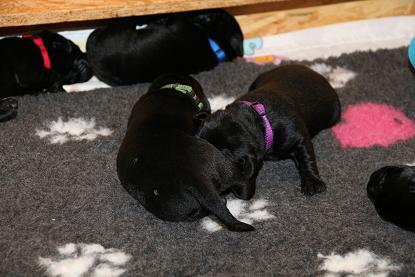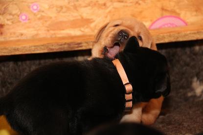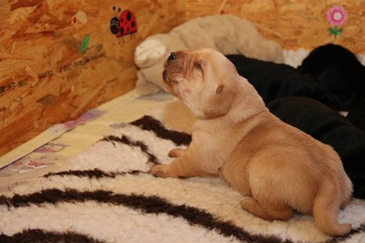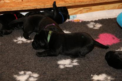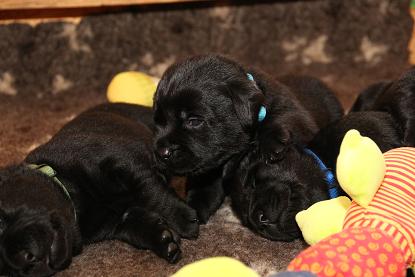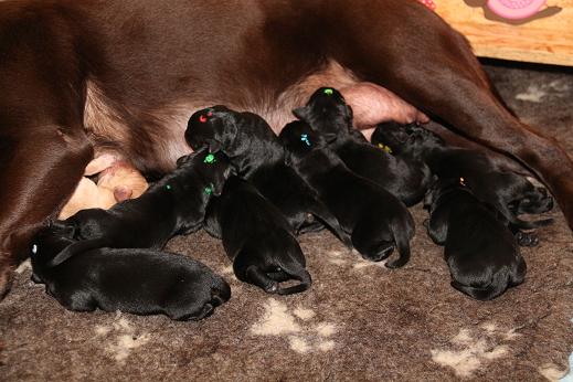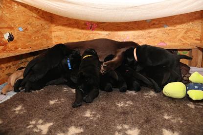 Ich bin nach wie vor begeistert von den Welpen! Ausgeglichen, mit einer ordentlichen Portion Arbeitseifer ausgestattet und dem Willen zu gefallen. Ein Traum, wie sie sich hier bei uns zeigen! Jetzt aber genug gelabert - hier kommen die Bilder der vergangenen Woche. Ich werde die nächsten Tage noch die Gewichte von morgen früh updaten ;) Bitte habt Verständnis, wenn es bei 1x wöchentlich bleibt. Mir rennt jeden Tag die Zeit davon ;) 9 Welpen sind halt doch was anderes als 3 oder 5 :) Update der Kampfgewichte: Zwischen 3450 g und 2740 g. Passt.