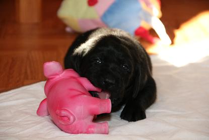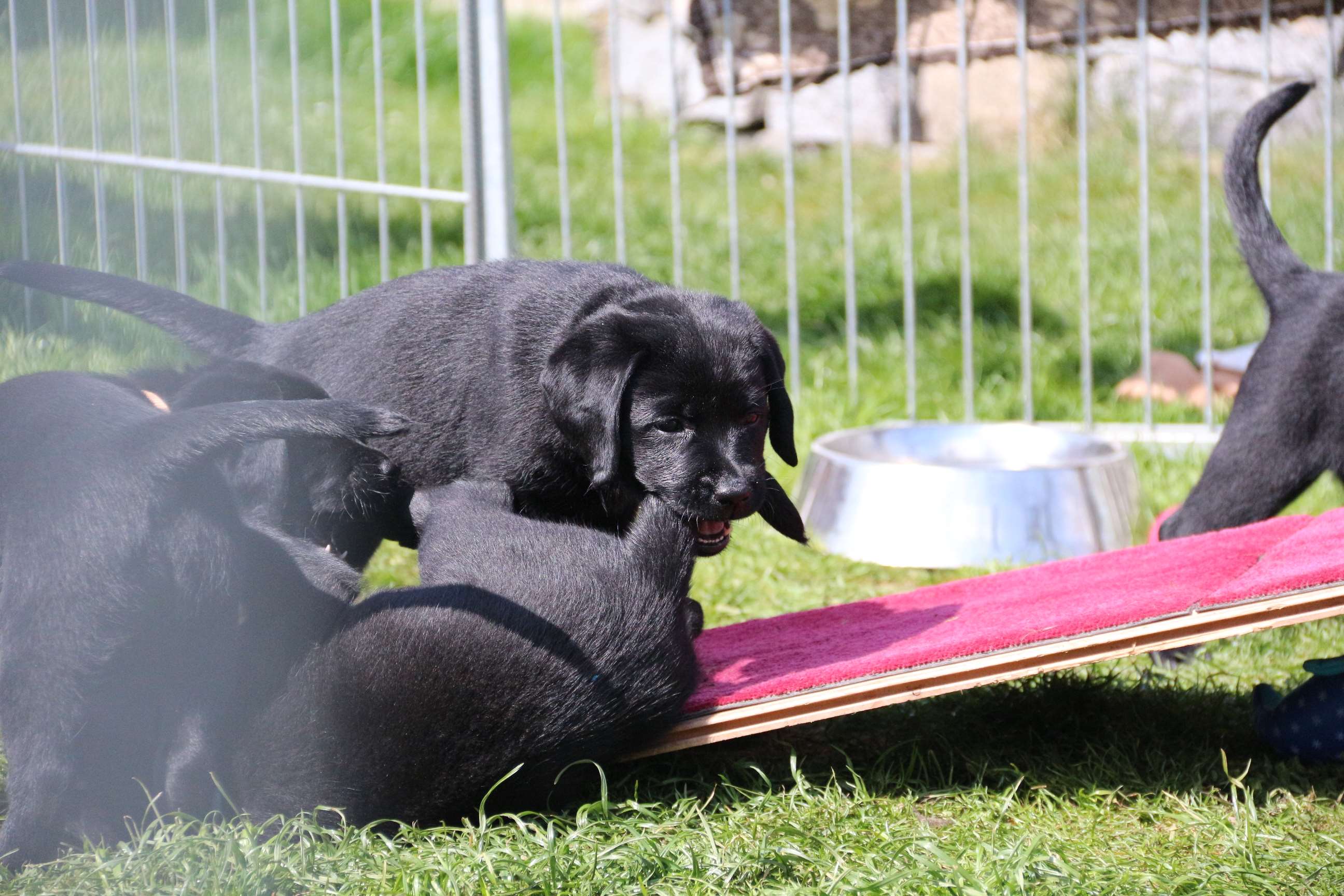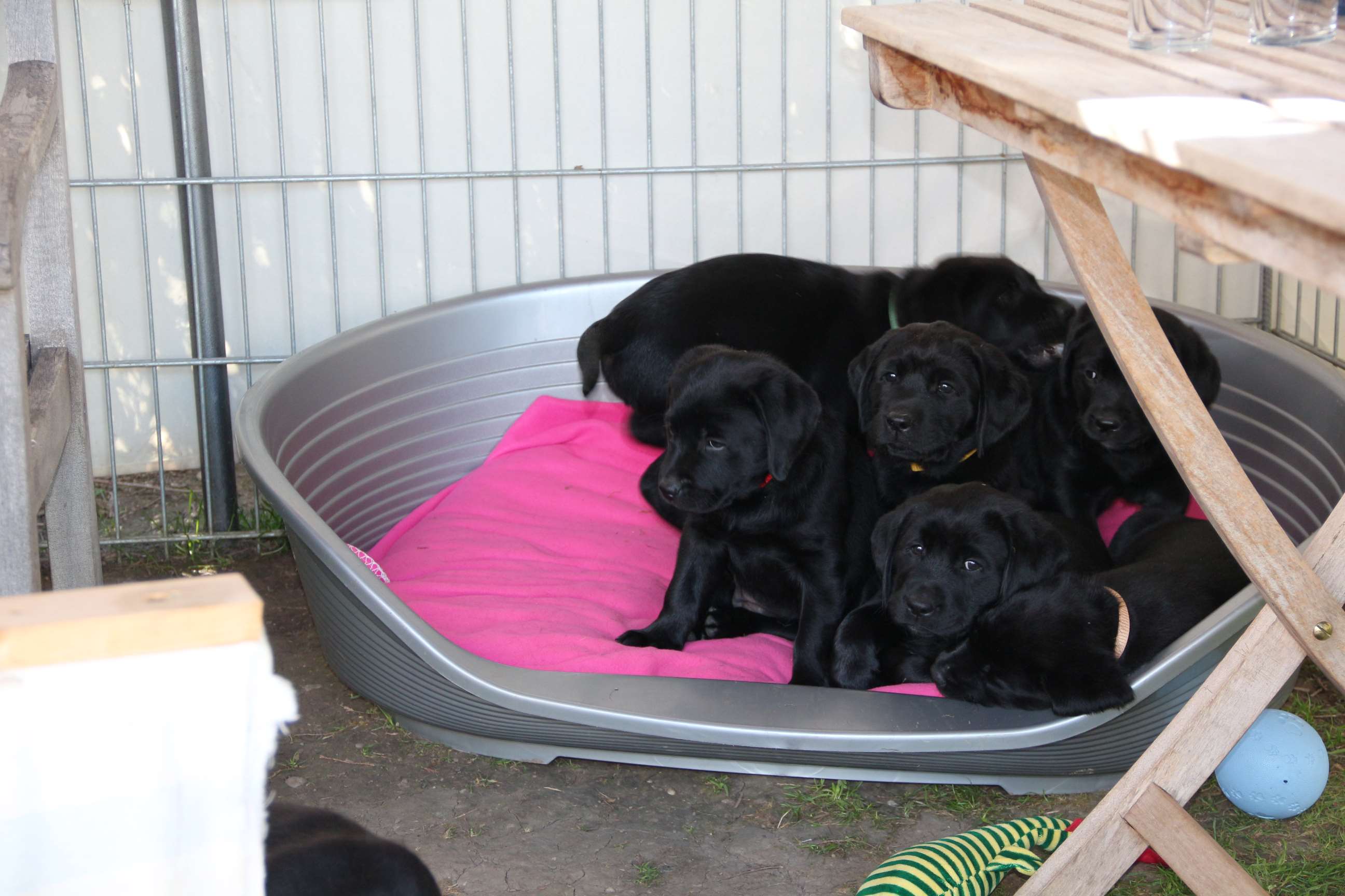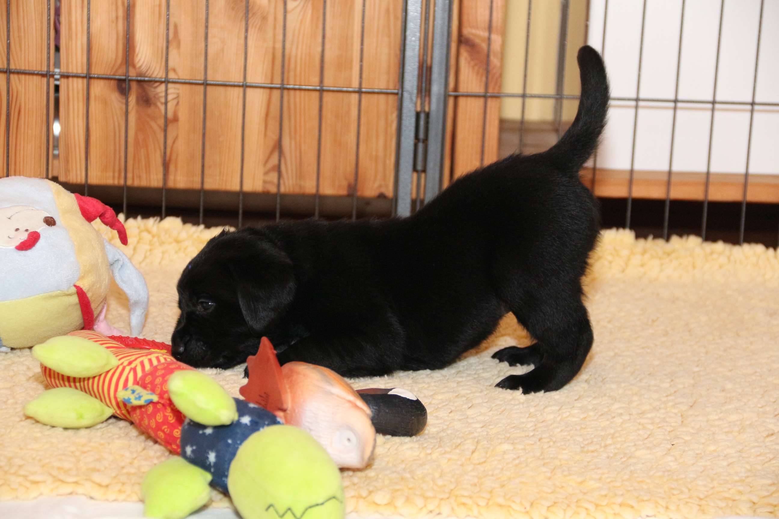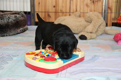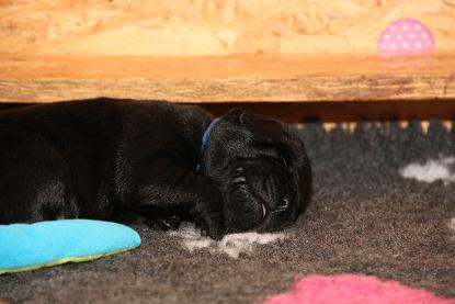 05. April: Unsere Sonntagskinder feiern heute ihren 6. Wochengeburtstag und somit ist leider bereits 2/3 der Welpenzeit vorbei... :( Ich mag gar nicht weiterdenken... Wir haben die vergangene Woche hauptsächlich drinnen verbracht. Das Wetter war so gar nicht nach unserem Geschmack! Seit gestern gehts wieder raus und die Welpen können nach Herzenslust fetzen und toben. Sie haben mittlerweile das Bällebad, das Wackelbrett und allerlei Spielsachen in Gebrauch und es ist so gaaaar nicht langweilig :D Wir hatten wieder viel lieben Besuch. Schön, dass sich alle immer viel Zeit nehmen - und ist die Anreise auch noch so weit :)