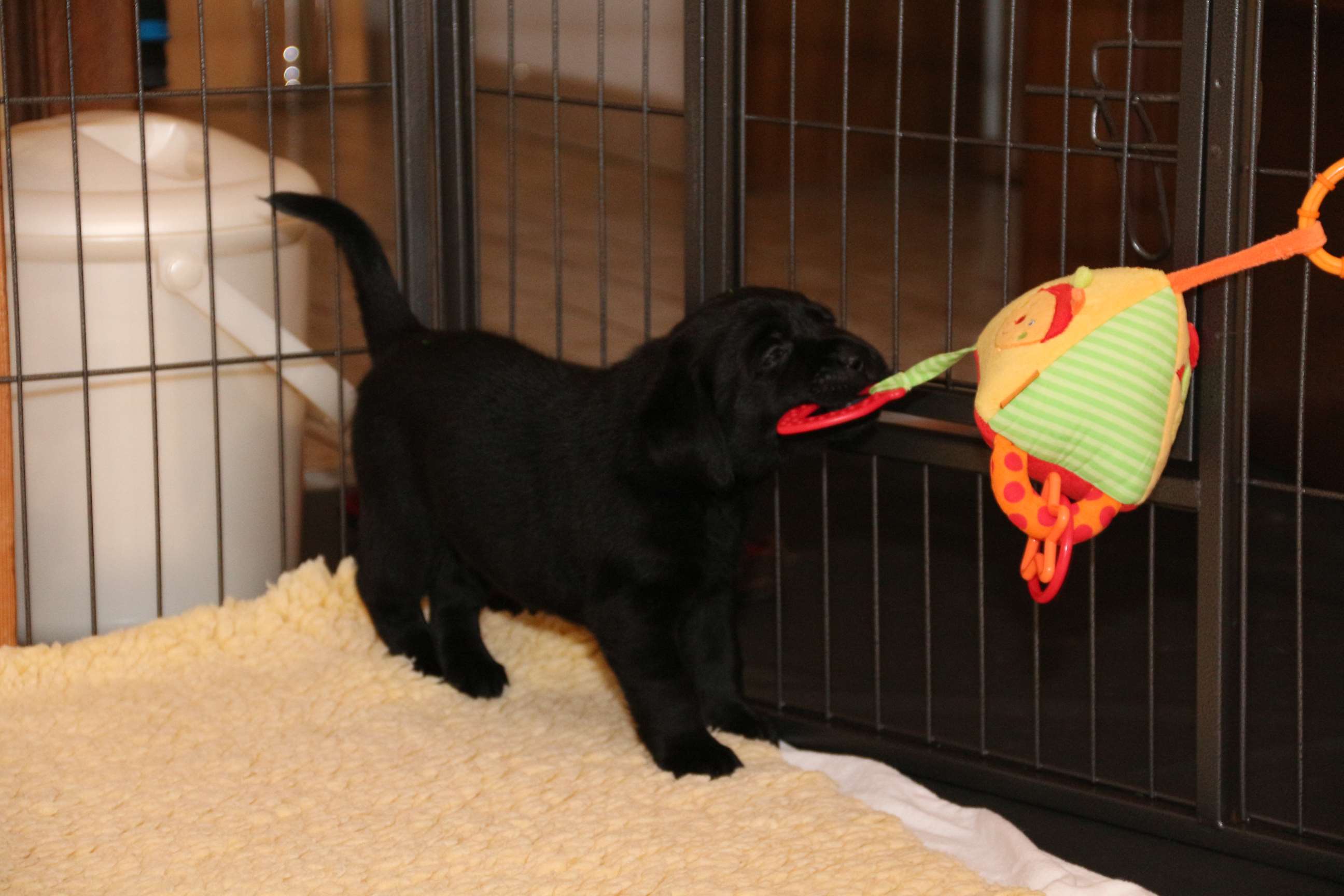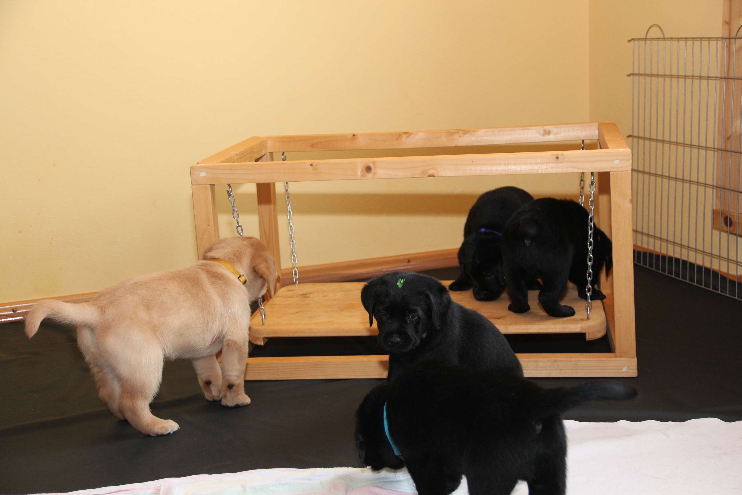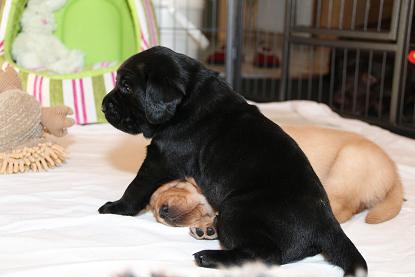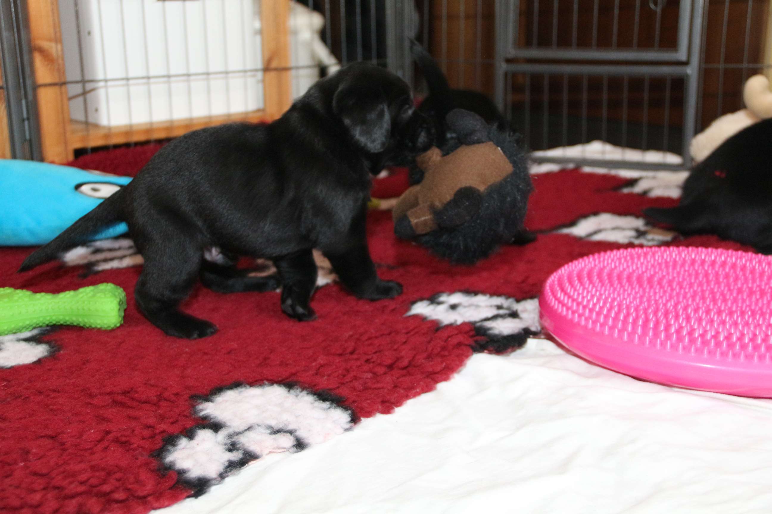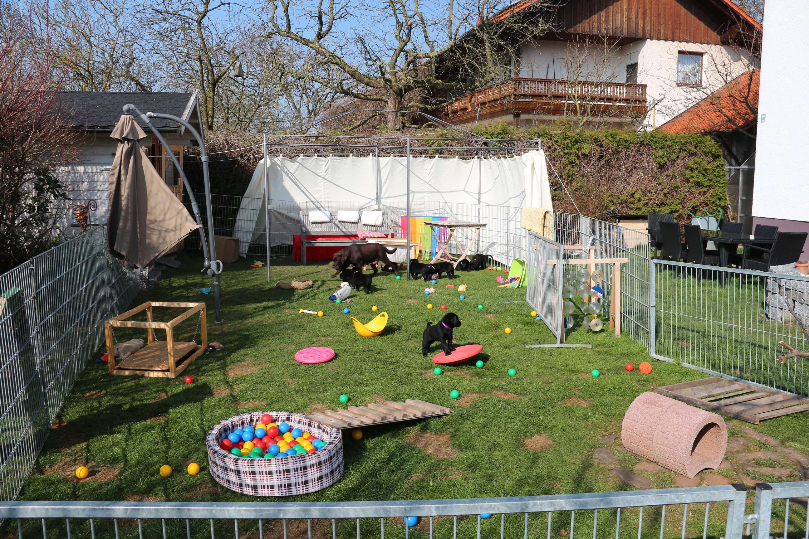 05. April: Unsere Sonntagskinder feiern heute ihren 6. Wochengeburtstag und somit ist leider bereits 2/3 der Welpenzeit vorbei... :( Ich mag gar nicht weiterdenken... Wir haben die vergangene Woche hauptsächlich drinnen verbracht. Das Wetter war so gar nicht nach unserem Geschmack! Seit gestern gehts wieder raus und die Welpen können nach Herzenslust fetzen und toben. Sie haben mittlerweile das Bällebad, das Wackelbrett und allerlei Spielsachen in Gebrauch und es ist so gaaaar nicht langweilig :D Wir hatten wieder viel lieben Besuch. Schön, dass sich alle immer viel Zeit nehmen - und ist die Anreise auch noch so weit :)