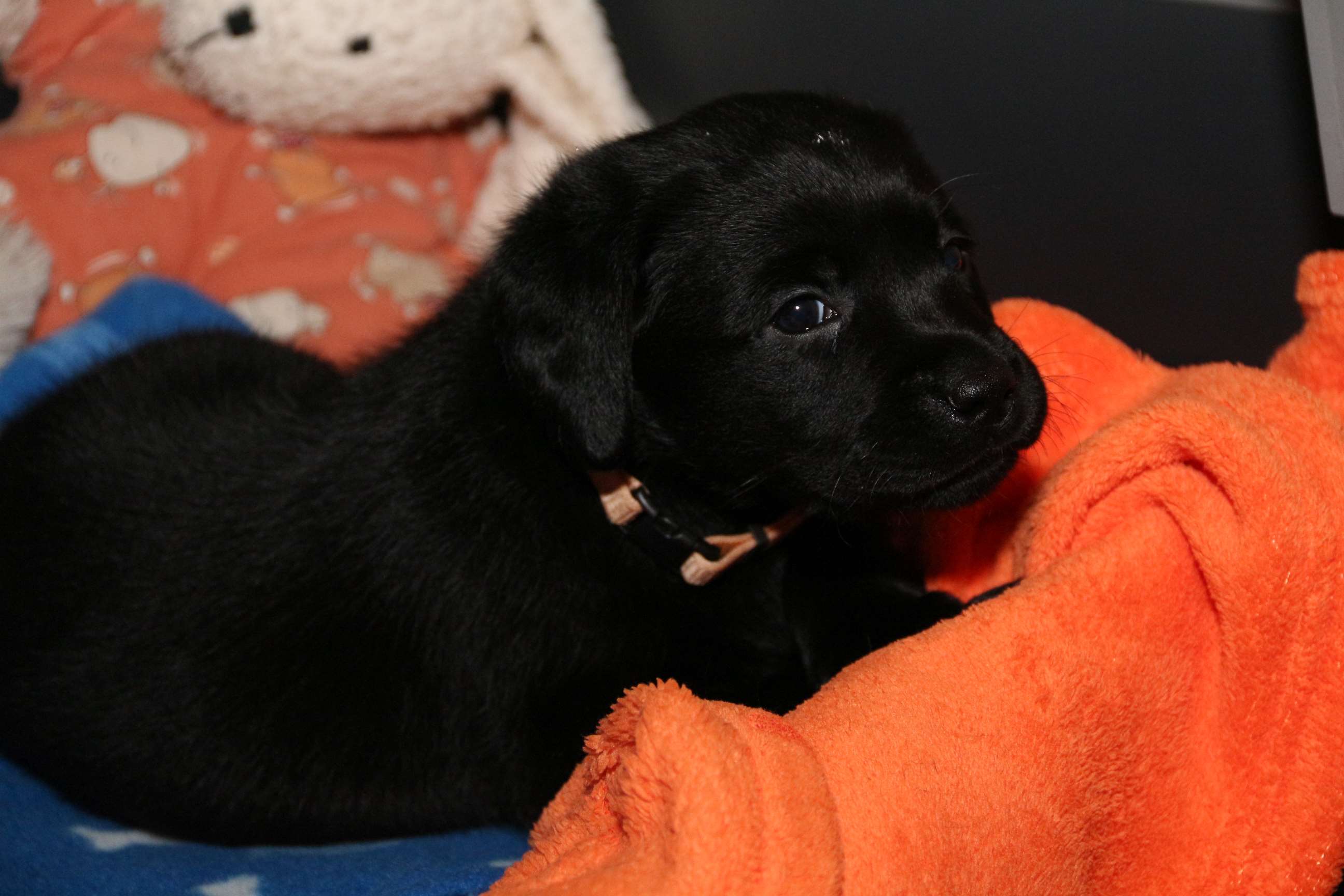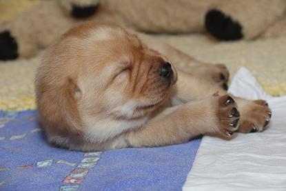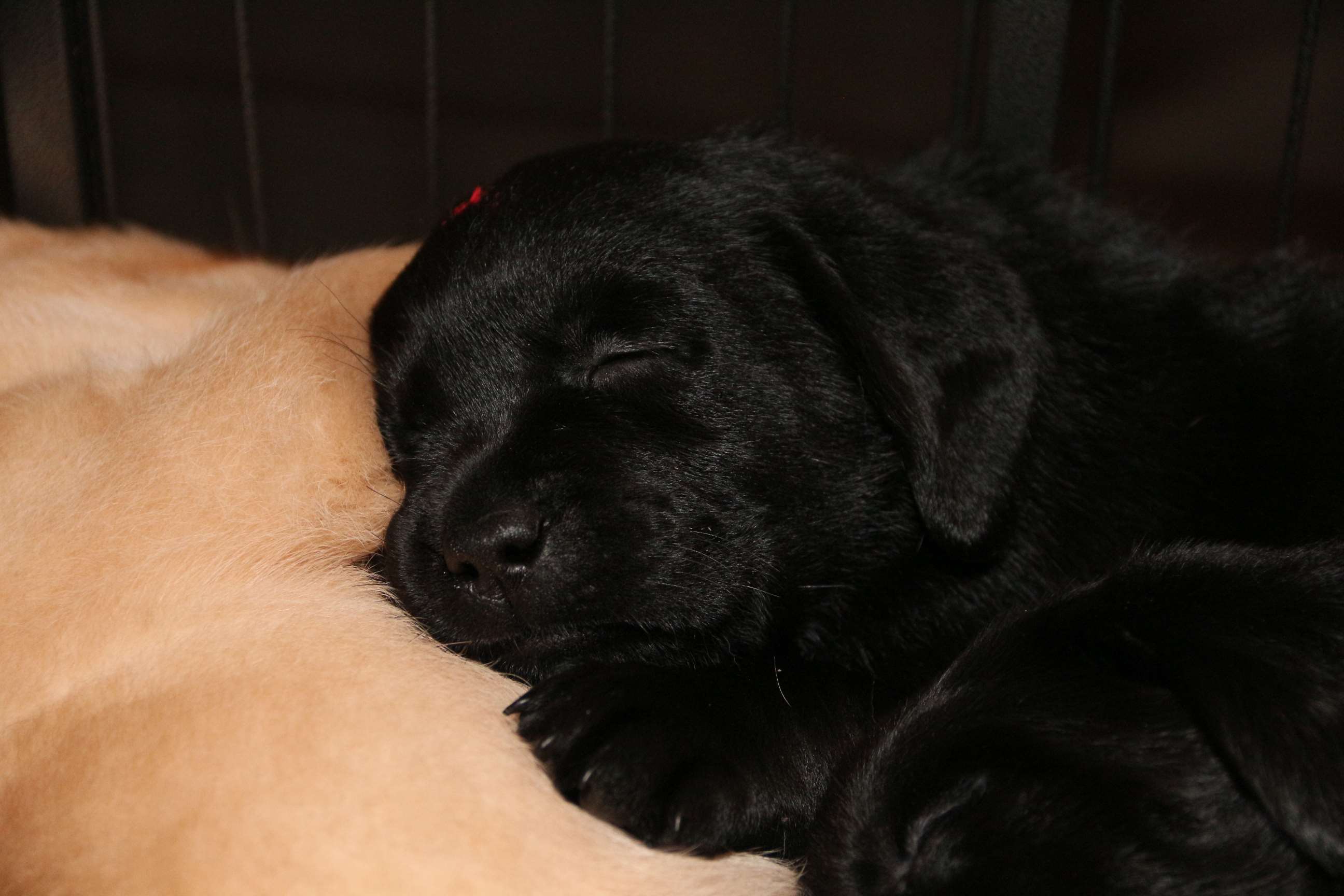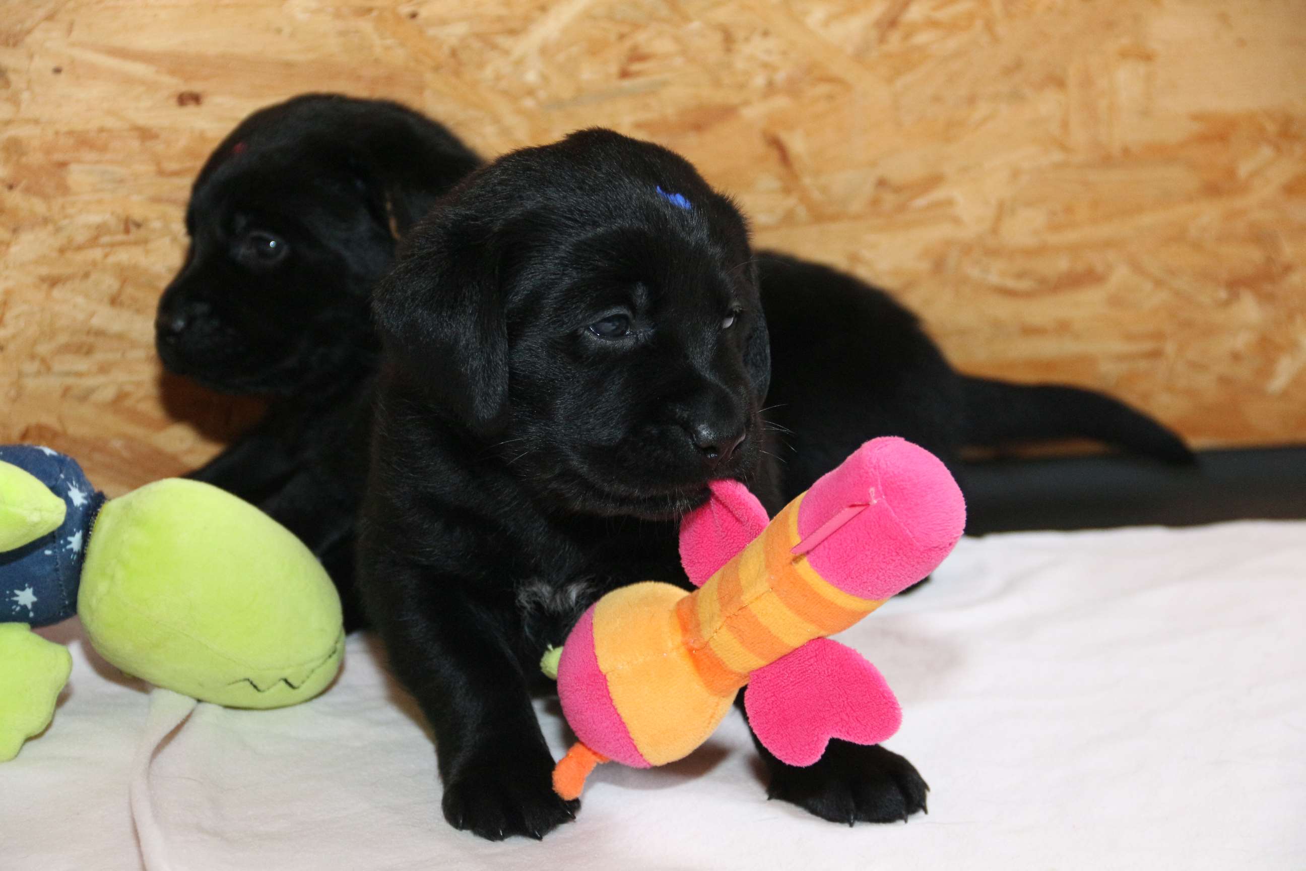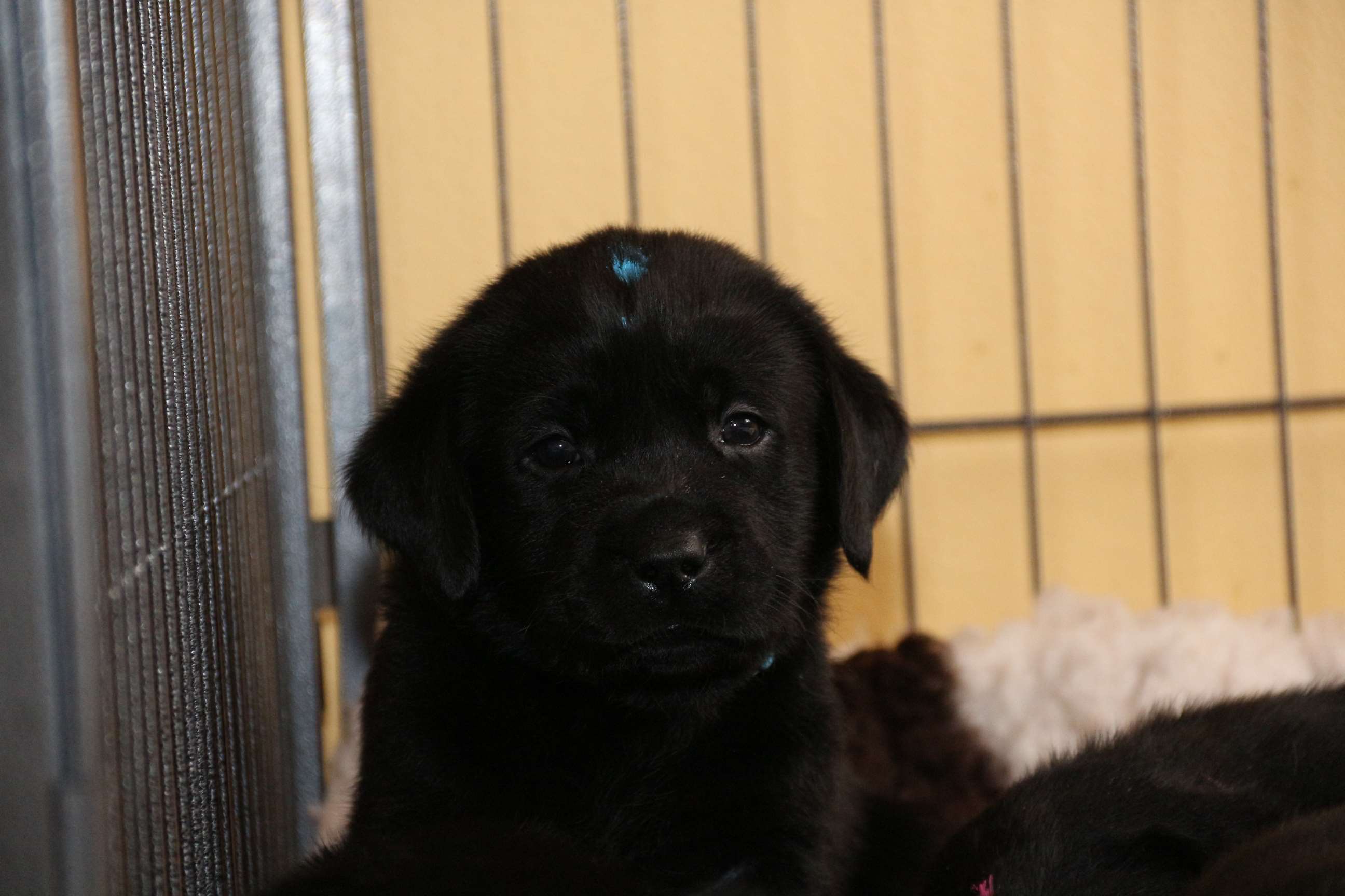 7. März: Vorgestern hat unsere Tierärztin Babys und Mama dem ersten Routinecheck unterzogen und hatte nichts zu beanstanden :) wenns so weitergeht, sind wir mehr als zufrieden! Heute morgen wogen die D-chen zwischen 1050 und 1310 Gramm. Die Brocken sind dabei unser heller Bub, Herr Gelb und Herr Grün. Seit gestern öffnen sie auch nach und nach die Äuglein und das ist sooo allerliebst... <3 Zuerst nur ein Dreieck innen und am nächsten Tag dann schon ganz. Wer nun denkt, das sind die Schwergewichte, der täuscht sich! Die “kleineren” Prinzessinnen waren die vorwitzigen und neugierigen! Gefolgt heute dann vom schwarzen Rüden mit dem gelben Band und unserem hellen Farbklecks :D Auch das Aufstehen und durch-die-Kiste-wackeln versuchen sie schon ganz eifrig. Hier haben die dicken Popos leider das Nachsehen... sind viiiel zu schwer für die kurzen Beinchen :) :) Es ist so niedlich <3 <3