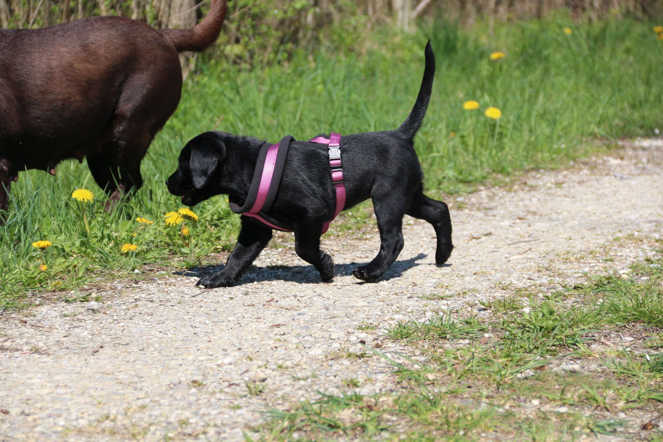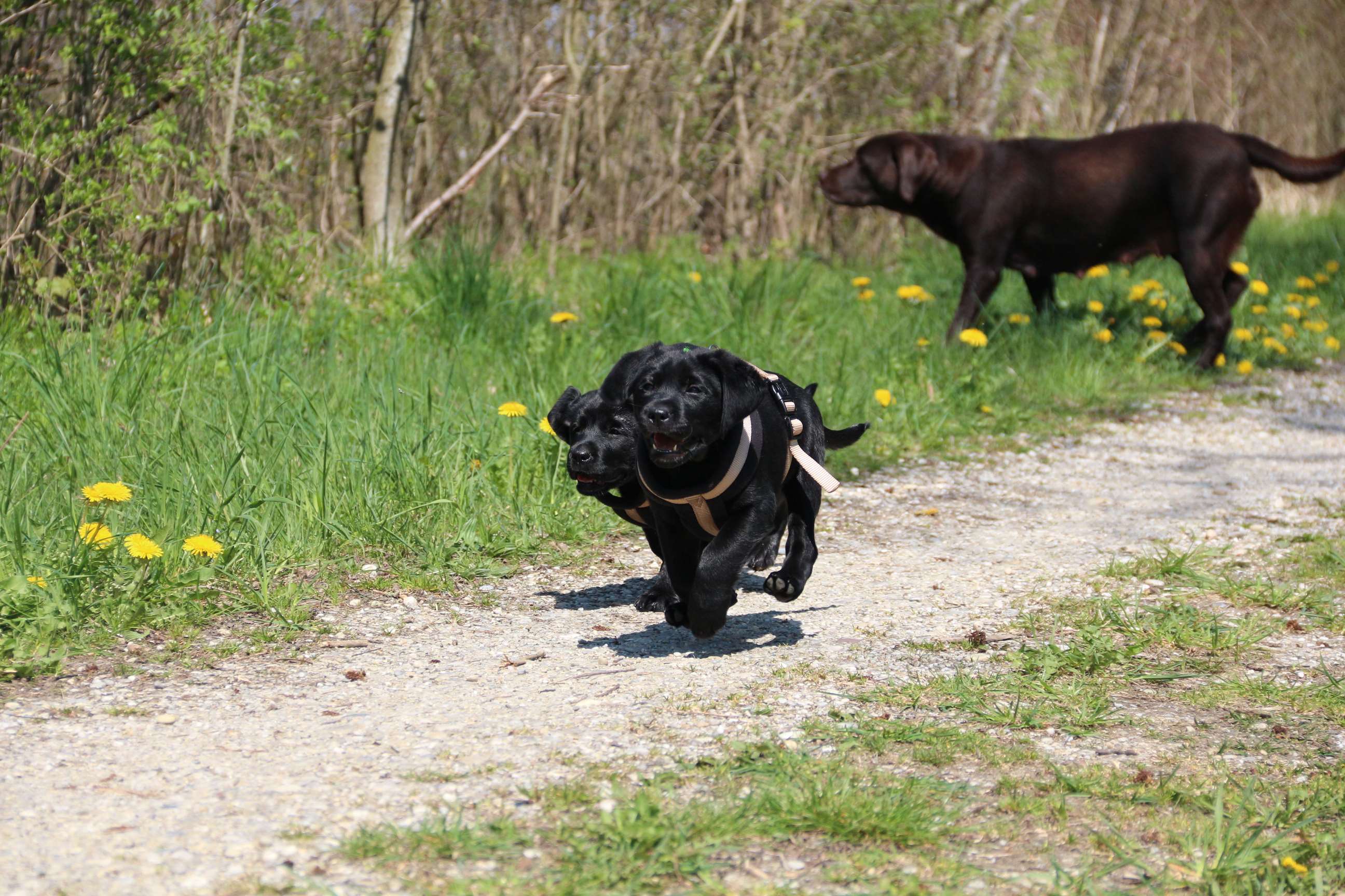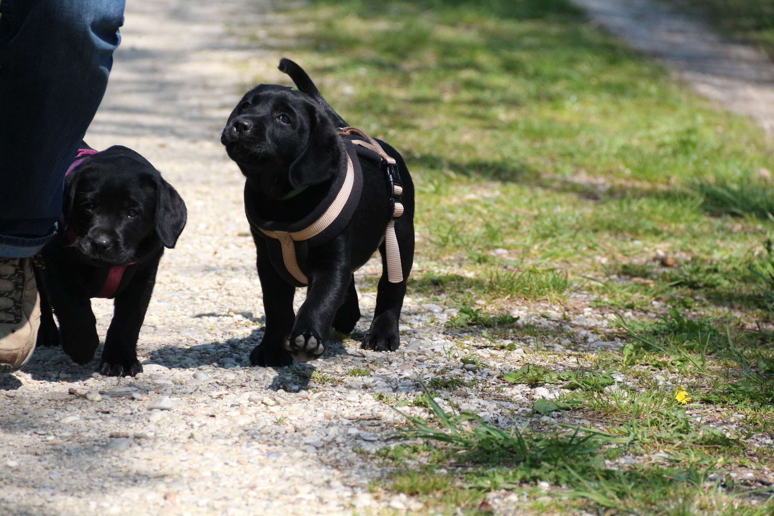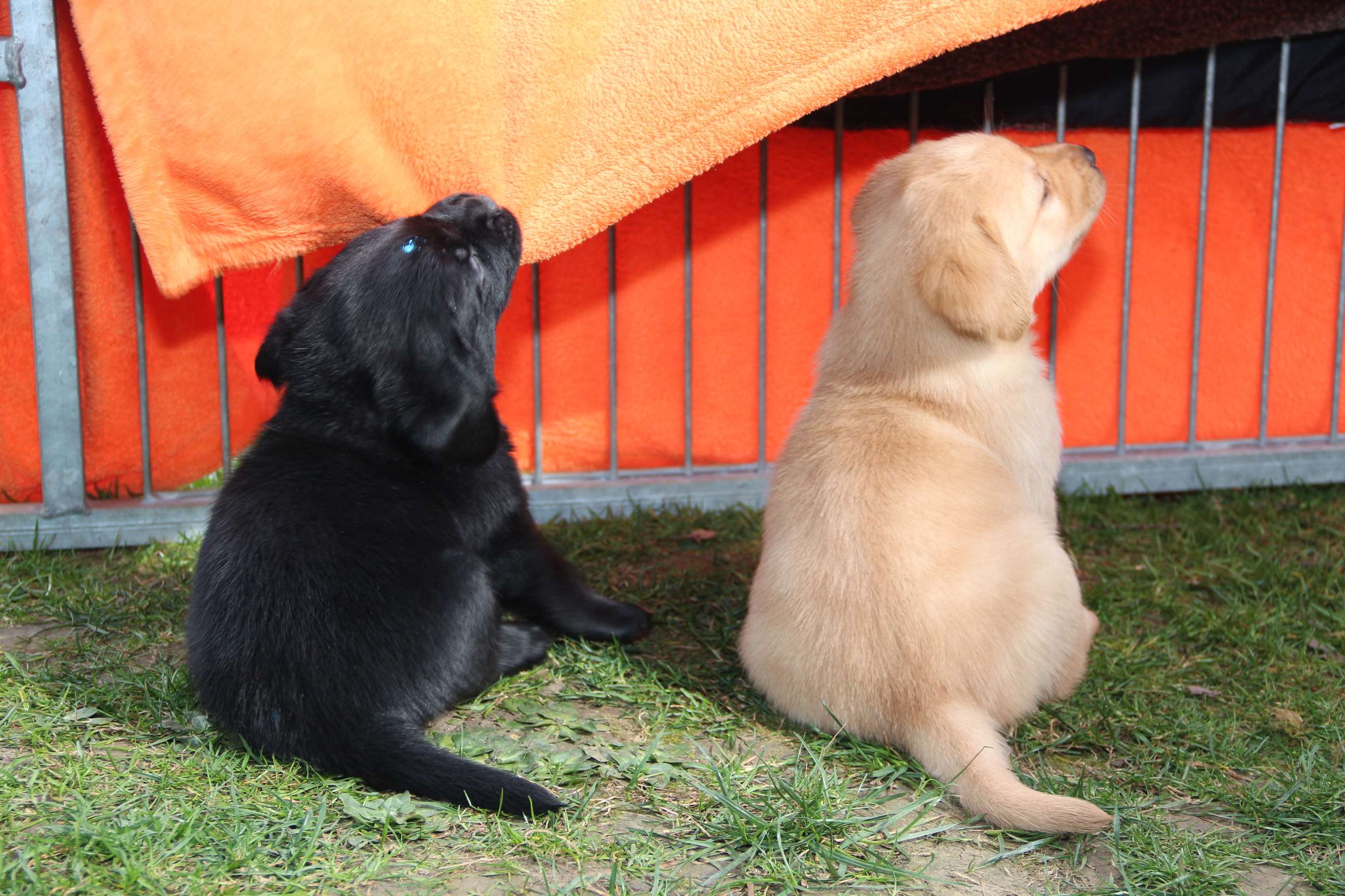 28. März: Morgen werden unsere Babys schon 5 Wochen alt und wir haben die Halbzeit damit überschritten :) Wir hatten seit letztem Wochenende jeden Tag Besuch - schließlich wollen und sollen ja alle Familien ihre künftigen Familienmitglieder live kennenlernen. Eine schöne und kurzweilige Woche. Die Welpen haben alles super mitgemacht. Sie sind frech, neugierig und auch der Hier-Pfiff ist schon ein Begriff - zu schön, wenn sie das Futter erahnen :) :) Wir haben schon einige Abstecher in den Garten gemacht, wie man sieht. Da wurde gleich mal Bekanntschaft mit dem Geräusch einer Säge aus Nachbars Garten gemacht, Flugzeuge, Traktoren etc. (was uns schon nicht mehr auffällt) aber sie haben bloß geguckt und die Ohren “gespitzt”. Ausserdem sind sie Staubsauger-tauglich und würden seeehr gerne beim Wischen helfen :D