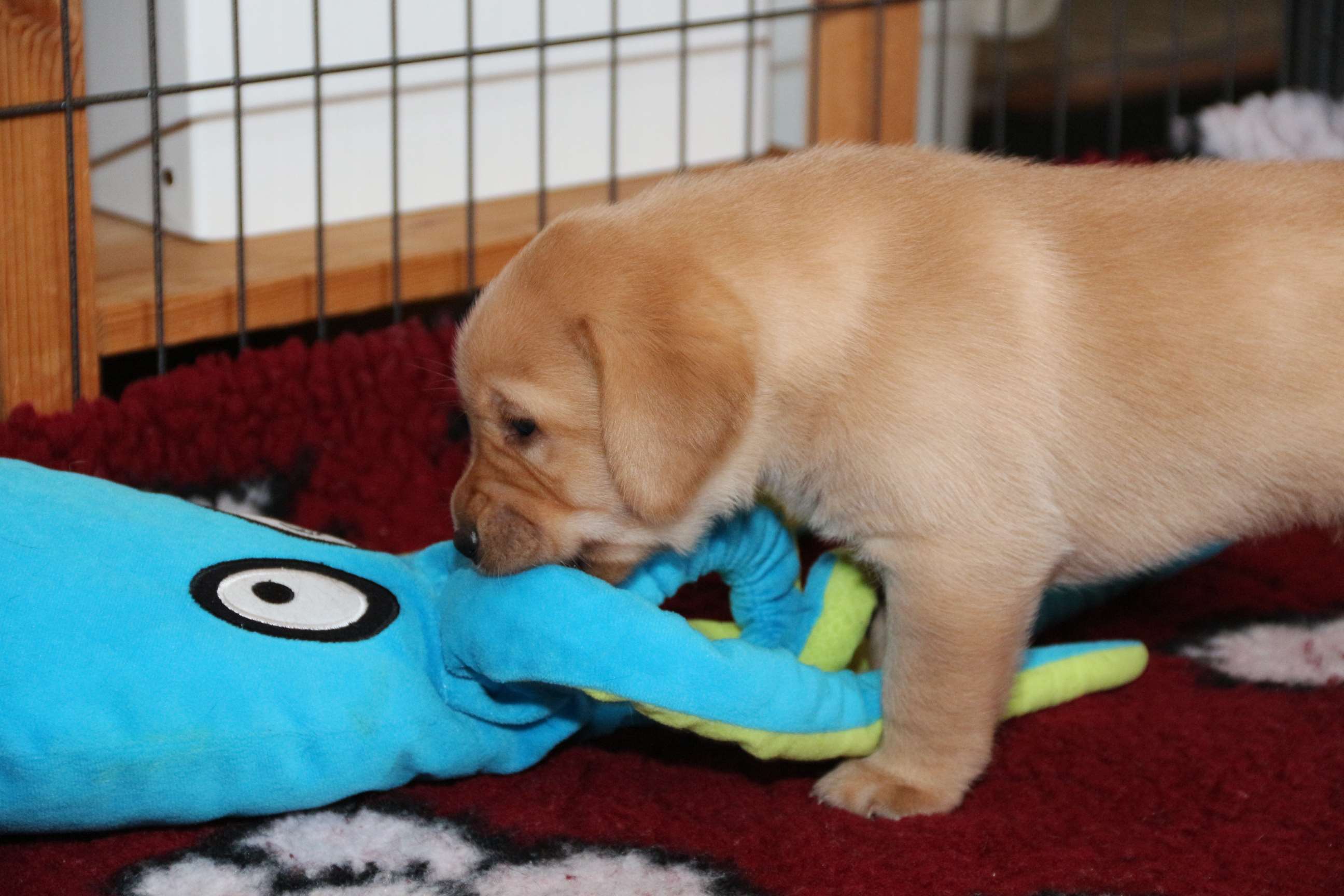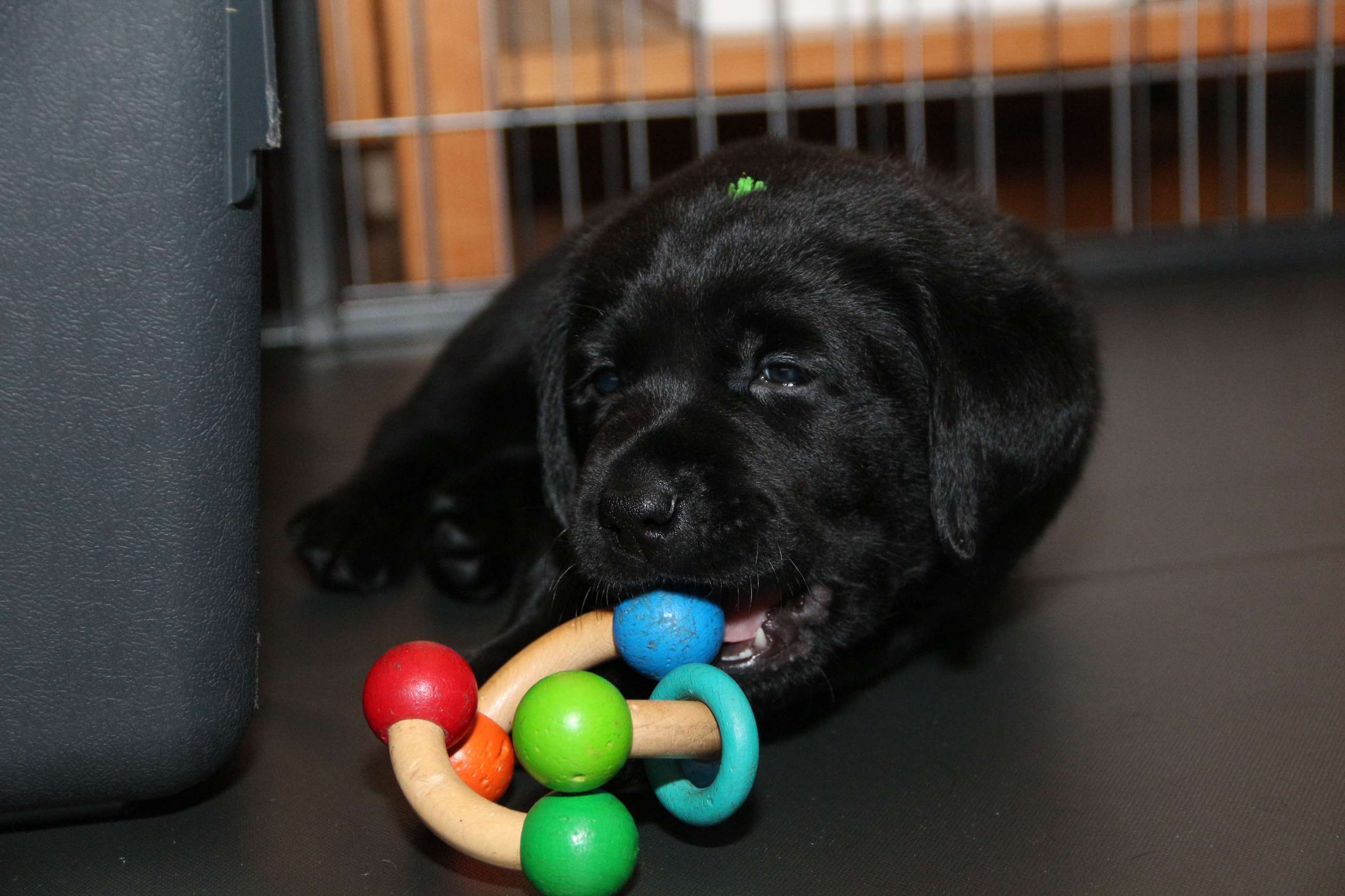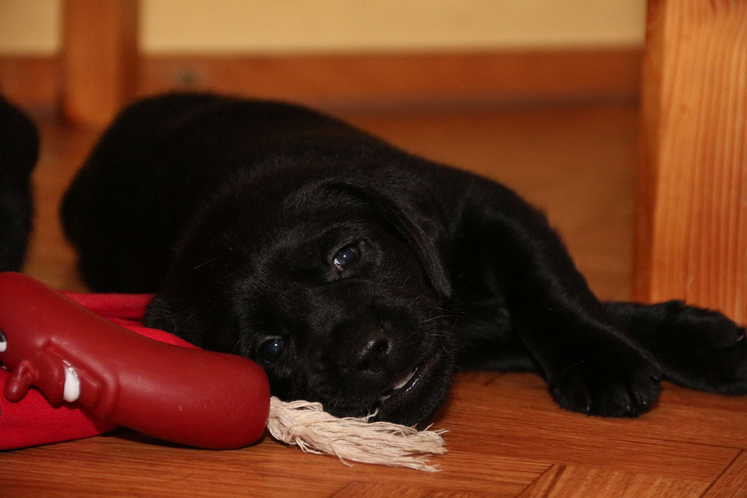 Die Babys haben die erste Wurmkur so nebenbei hinter sich gebracht. Schluck ma die Pampe halt... egal und sie stellen die ganze Woche schon das Welpenzimmer auf den Kopf. Durch die Bank sind sie aufgeweckt, neugierig und seeeehr fidel :D :D Die Zähne sind da und jetzt meinen die Zwerge, Socken und Klamotten sind eigens nur für sie da! Nehmt euch in Acht liebe Leute :D Aber da der Akku grade mal für ca. 20 Minuten hält, könnt ihr euch anschließend wieder erholen :P